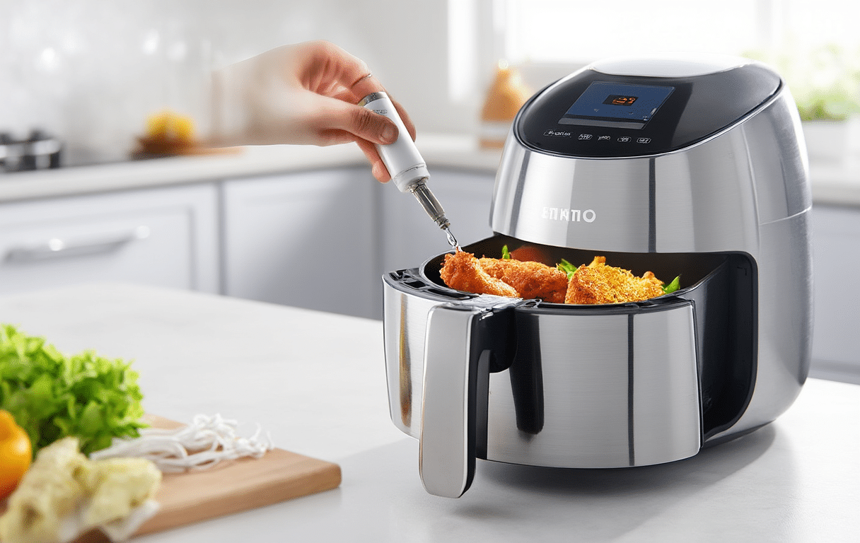 Du möchtest keine halbgare Heißluftfritteuse mit Temperaturfühler?